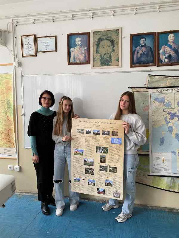 22. јануар 2026. Ученици II-3 у оквиру предмета Пoјединац, група и друштво, направили су професионални плакат на тему Материјално наслеђе Срба на листи УНЕСКА-а. Похвала за ученицу Вању Миросављевић и професорку Слободанку Павић за одличну идеју и израду плаката.