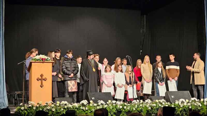 Првонаграђени ученици су добили посебна признања од Епископа Јеротеја на Светосавској академији.