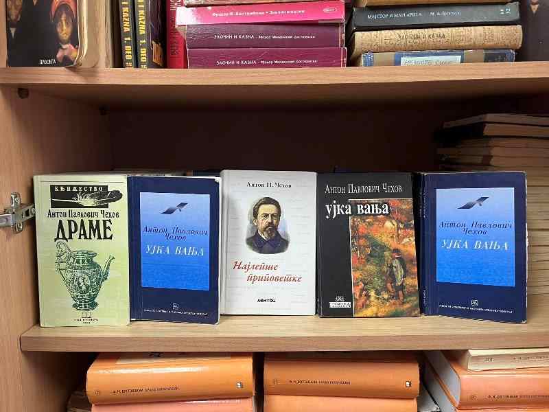 Професорка руског језика Милијана Лазић, у сарадњи са школским библиотекаром Радојем Крстићем и ученицима првог разреда гимназије, обележила је годишњицу рођења најзначајнијег руског писца Анатона Павловича Чехова, израдом паноа и читањем његових најпознатијих дела.