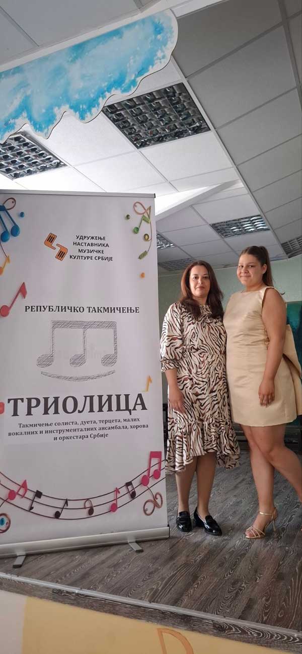 Дивне вести из Београда са републичког такмичења „Триолица“. Наша Сара Младеновић је бриљирала у својој интерпретацији песме „Златни дан“ и освојила прво место! Од 1500 такмичара из целе Србије, које се одвијало током 2 дана, ово је велики успех! Честитке професорки музичке културе, Јелени Богдановић и ученици Сари Младеновић на победи! Поносни смо на вас!